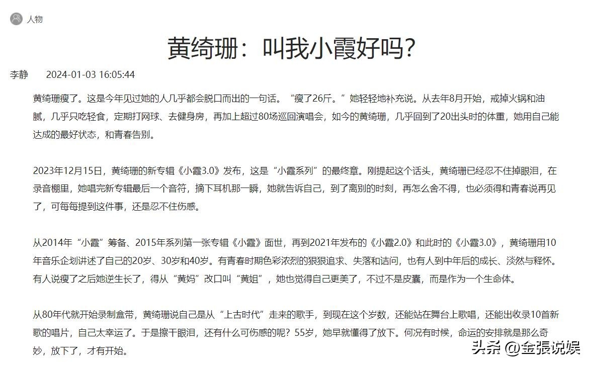 网友说,黄绮珊不用活成李谷一的样子,她就是她自己,这就够了。