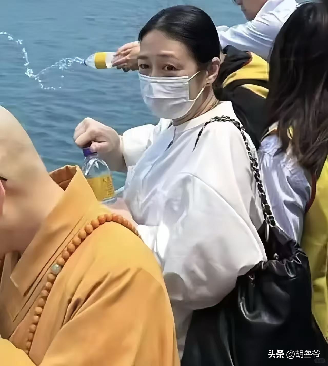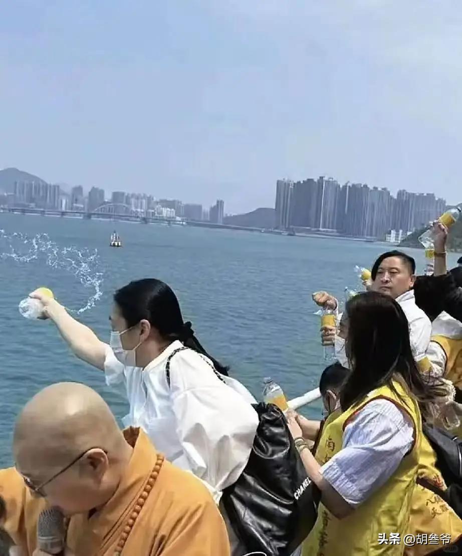 可她身上没一点炫富的劲儿,就安安静静站在海边,跟着大家一起放生,神情特别从容。