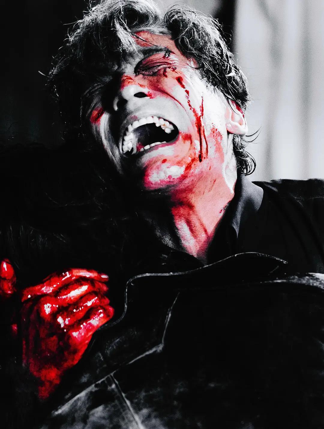 那一刻梁家辉用包扎自己伤口的疼痛化作一声狼嚎,痛苦过后,人性再度被兽性取代。